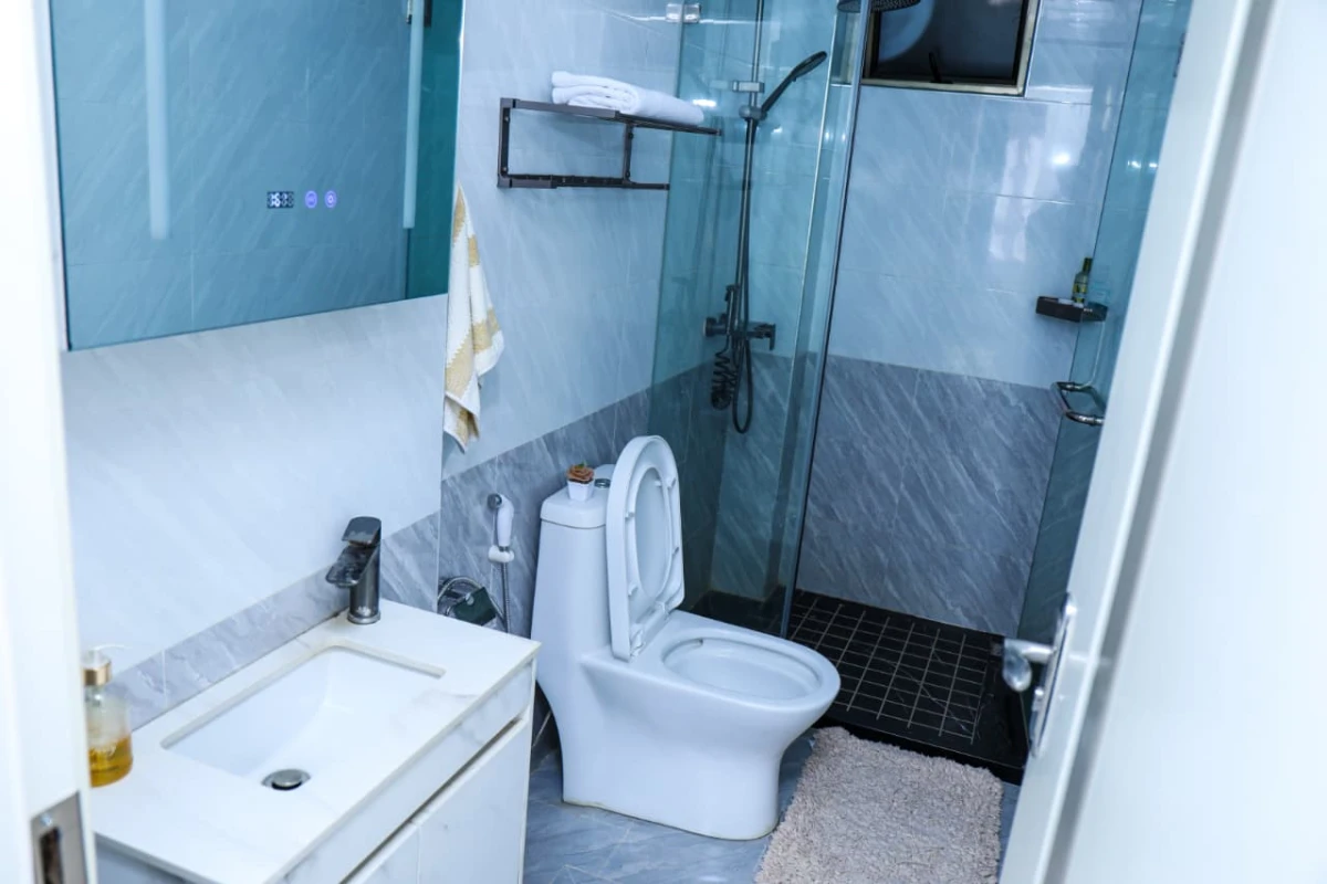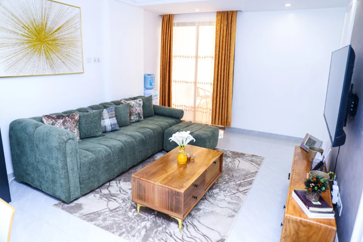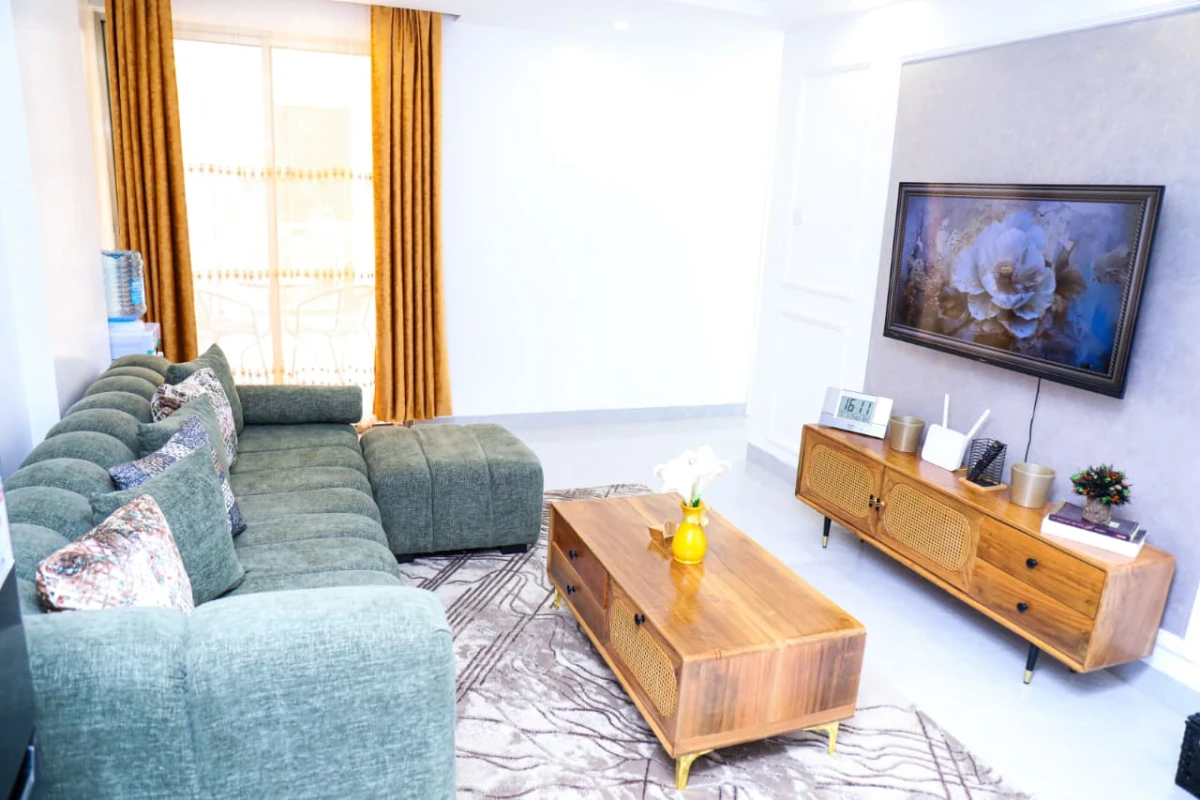 Enjoy a stylish and comfortable stay at Goldpark Homes in the heart of Kilimani. This modern apartment is ideal for short or long stays, featuring a cozy lounge, comfortable bed, private balcony with city views, a fully equipped kitchenette, and a sleek bathroom with essential amenities.